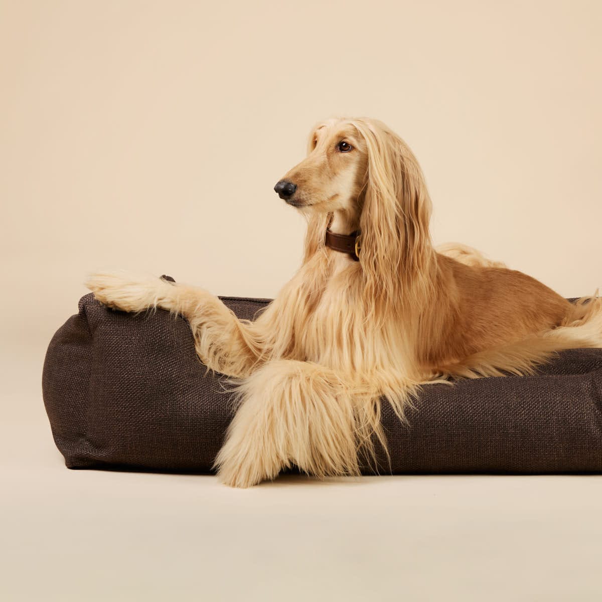 The beauty of autumn is not only to be seen on the relaxing walks with our four-legged friend in the nature. He does not stop at our front doors and brings the color palette of the deciduous forest into our interiors and closets. In the living room the decoration trends of this season call classic red tones, noble brown, colors like curry, forest green, orange and blackberry. When arranging the room, you should focus on simple timeless furniture and equip it with different textiles, decorations such as candles, vases and plants according to the seasons. Also the dog sleeping area can spray autumn mood with the right details. Our William Walker Sleep-Collektion focuses on a high-quality and restrained design. Our dog beds and plaids in stylish shades of grey are versatile, timeless and look great in every season. With the stylish William Walker Play Bones made of leather or fluffy plush can playfully add an autumnal touch to the simple dog bed. Our Play Bone in orange smooth leather or mustard yellow plush reflect the warm colors of the forest on the dog's sleeping place of your dog. The living ambiance is now all about autumn.