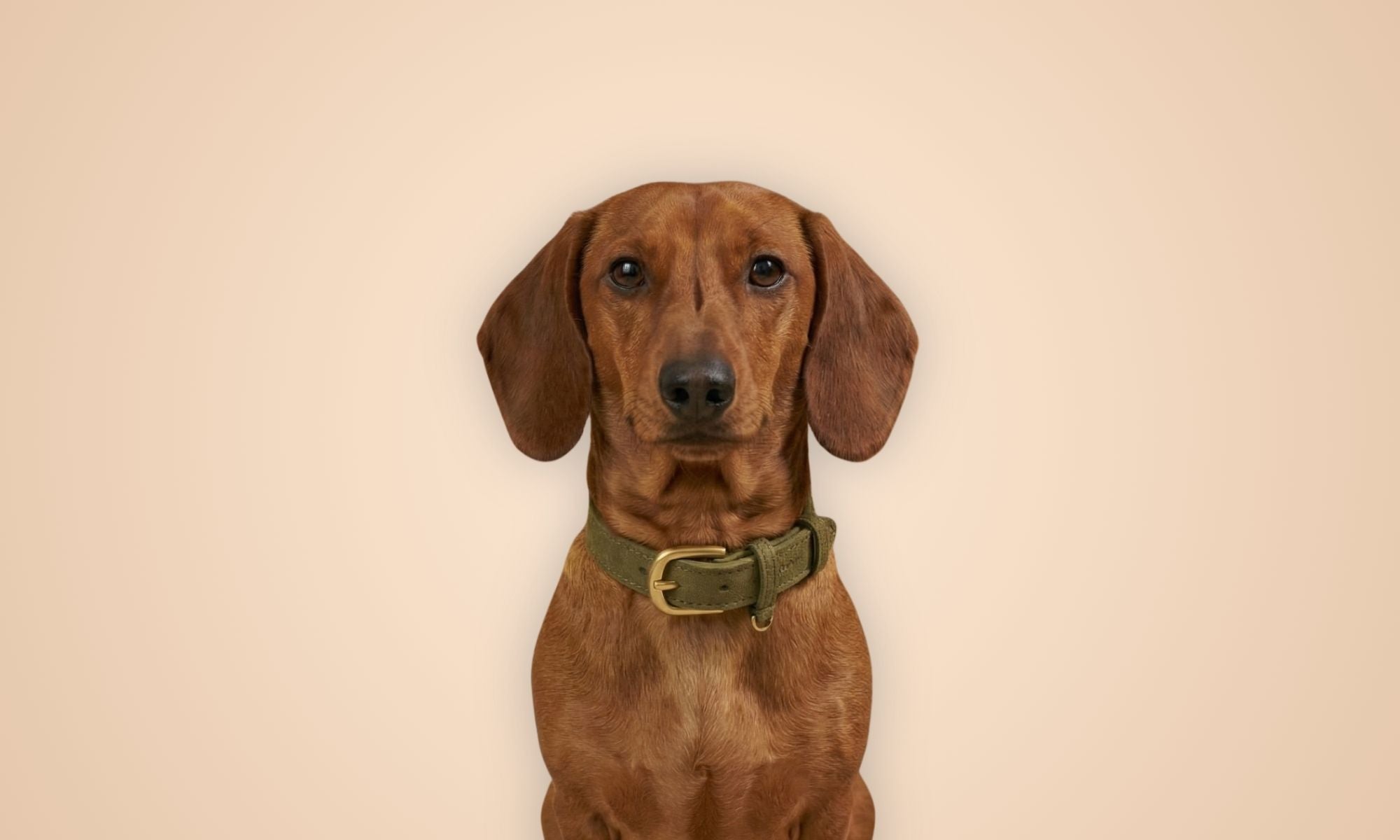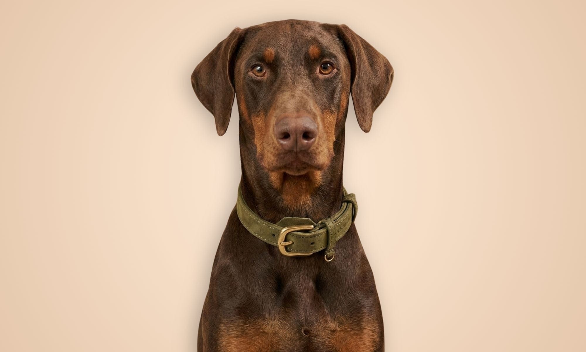 Collar para perro de piel nobuk impermeable y fácil de cuidar con elegantes herrajes de latón.