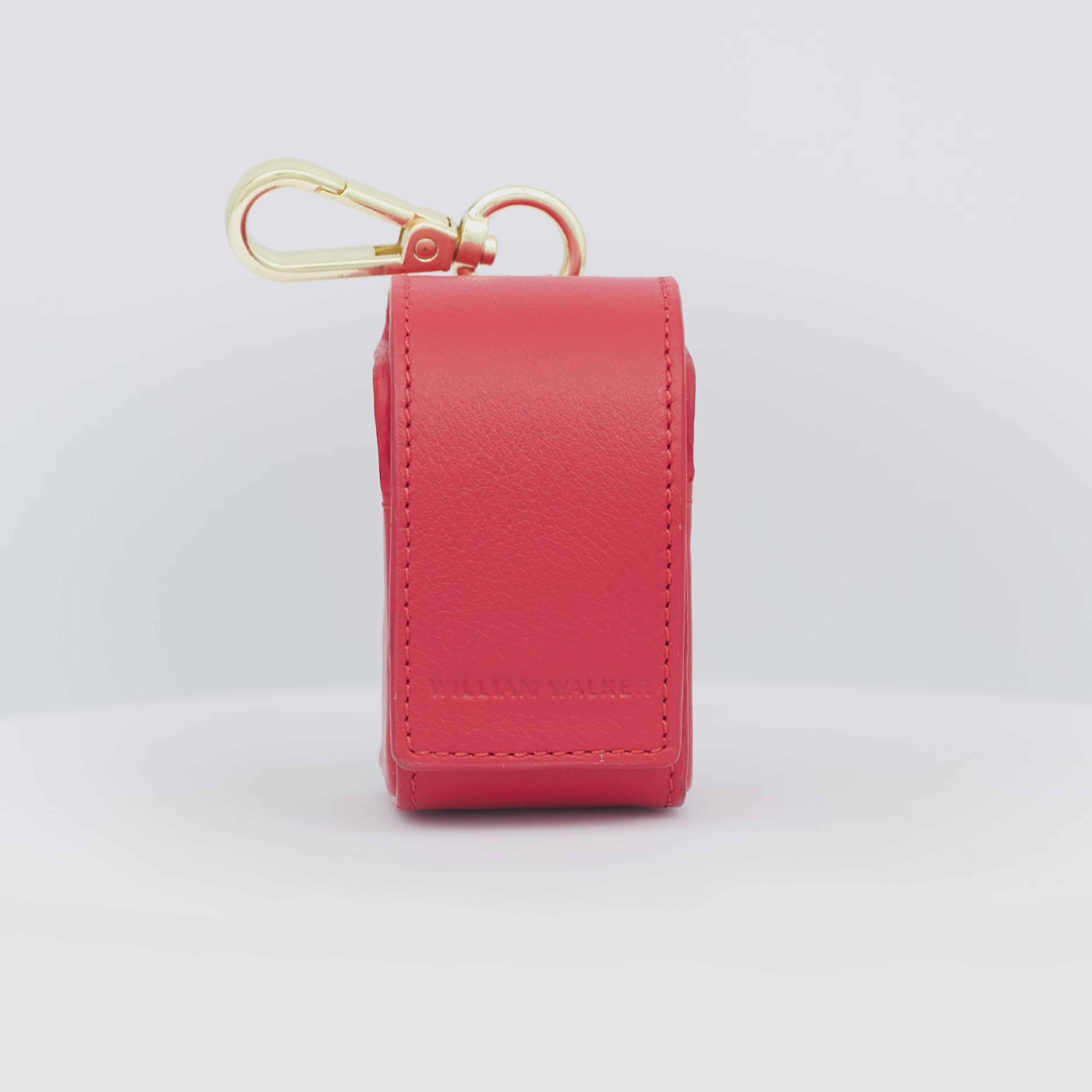 Distributeur de sacs à crottes de haute qualité en cuir rouge avec ouverture pour le retirer à l'arrière. Facile à attacher grâce au mousqueton.