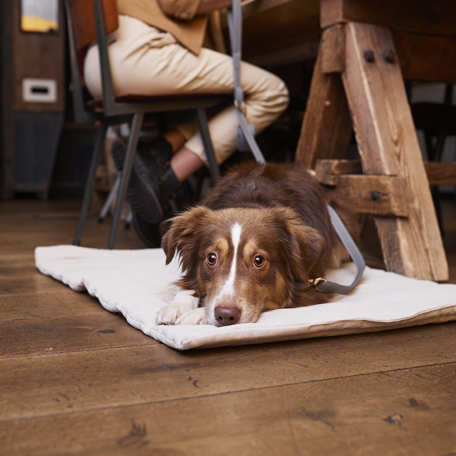 Tappetino da viaggio imbottito con imbottitura trapuntata in un elegante colore grigio. Facile da trasportare grazie alla pratica maniglia.